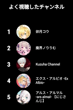 おはようございますゆうりです 今年よく見たYouTubeチャンネル👀 VTuberばっかりでした 寝るときなんか音欲しいタイプで 配信かけながら寝てたのが多いのが このへんの人たちかなー? ちなみに見てたゲームは 結構見てるけど LOLはいまだによくわかってない👶🏻 今日も出勤です!