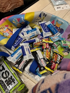 今日いるだよーーーー👶🏻🤍 今日ゎ早朝から妹の修学旅行お見送り行ってきたよーーー🚗³₃ 楽しんできてね〜🫶🏻👶🏻🤍 ハロウィンのお菓子貰ったよー🎃綿菓子食べたいって言ってたら綿菓子持ってきてくれた〜🥹💭ありがとぉぉ🫶🏻 穴あけるやつ楽しくて好き!まだまだ中身ゎ子どもです👶🏻w